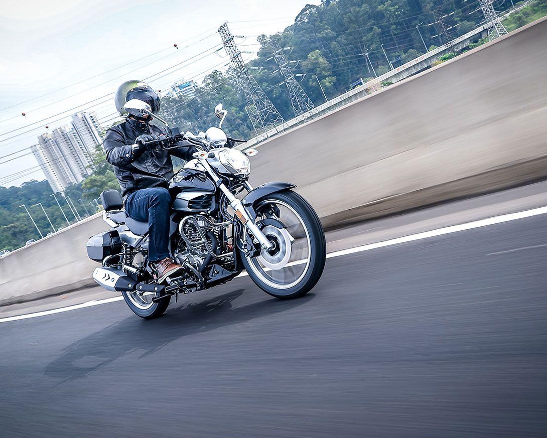 Uma releitura atual do estilo consagrado entre as motos estradeiras americanas, e que vai fazer sucesso com você por onde você for. Sempre com uma ótima performance, muito conforto, segurança e economia.